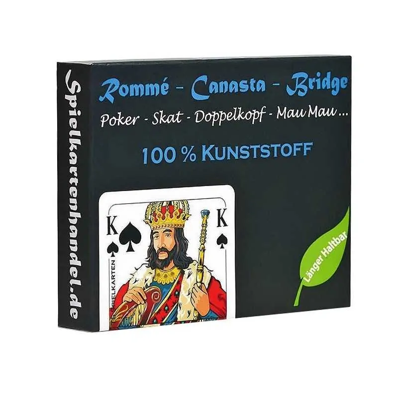 Υψηλής ποιότητας, αδιάβροχη πλαστική τράπουλα, η οποία δεν σκίζεται ή λυγίζει. Τα χαρτιά μπορούν να πλυθούν στο χέρι και είναι ανθεκτικά στο νερό. Χάρη στην κατασκευή της από πλαστικό, η ανθεκτικότητα της τράπουλας σε σχέση με τις κάρτες χαρτιού είναι έως και 30 φορές υψηλότερη. Η συσκευασία περιλαμβάνει 2 τράπουλες με 52 φύλλα και 3 τζόκερ για κάθε τράπουλα. Γαλλική αρίθμηση των φύλλων