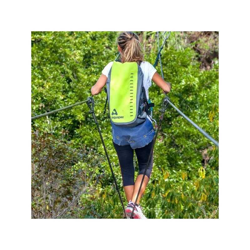 Είναι κατάλληλο για να προστατέψει τα πράγματά σας από το νερό, τη σκόνη και το χώμα κρατώντας τα στεγνά κάτω από οποιεσδήποτε καιρικές συνθήκες. Επιπλέον διαθέτει υψηλής αντοχής πάτο από σκληρό βινύλιο, το οποίο προσφέρει μεγάλη αντοχή στο σάκο καθώς έχει υψηλή αντοχή στην τριβή. Σε κάθε αδιάβροχο σακίδιο υπάρχει χερούλι στο πάνω μέρος για εύκολη μεταφορά ή για στερέωση σε κάποιο σταθερό σημείο που επιθυμείτε. Για παράδειγμα μπορείτε να το ασφαλίσετε στην οροφή του αυτοκινήτου ή στο εσωτερικό μιας βάρκας ή ενός καγιάκ. Το αδιάβροχο σακίδιο της Aquapac είναι ιδανικό για εκδρομές σε ποτάμια (river trekking) ή για δραστηριότητες κοντά στο νερό (κανό, kayak, scuba, canyoning κλπ) καθώς θα κρατήσει στεγνά τα είδη κάμπινγκ σας, τα ρούχα σας και γενικά όλο τον outdoor εξοπλισμό σε όλη την διαδρομή σας.