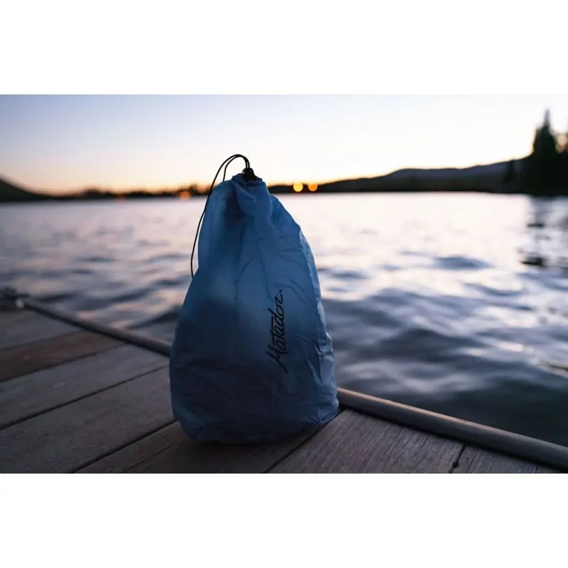 Μικρός αδιάβροχος σάκος της Matador που αποθηκεύεται σε μικρή πρακτική θήκη μπρελόκ, με αδιαβροχοποιημένες εσωτερικά ραφές. Ιδανικός για να βάζετε βρεγμένα αντικείμενα για να μην βραχούν άλλα πράγματα ή για να βάλετε στεγνά αντικείμενα που δεν θέλετε να βραχούν. Κλείνει με ένα κορδόνι. Εξαιρετική ποιότητα κατασκευής και όμορφο, λειτουργικό design, σε όμορφο γαλάζιο χρώμα από την αμερικάνικη Matador.