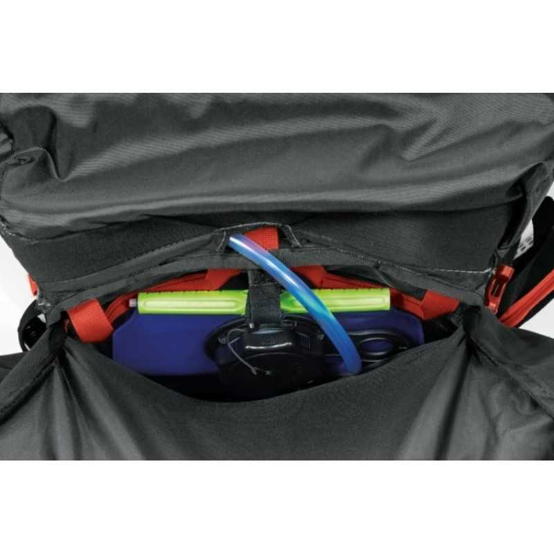 Το ορειβατικό σακίδιο Ultimate της Ferrino δέχεται ασκό νερού (υδροδοχείο) με δική του τσέπη στο πίσω μέρος. Επιπλέον, το σακίδιο έχει εξωτερικά υποδοχές για την αποθήκευση outdoor εξοπλισμού, μπατόν πεζοπορίας και σκοινιού ορειβασίας.