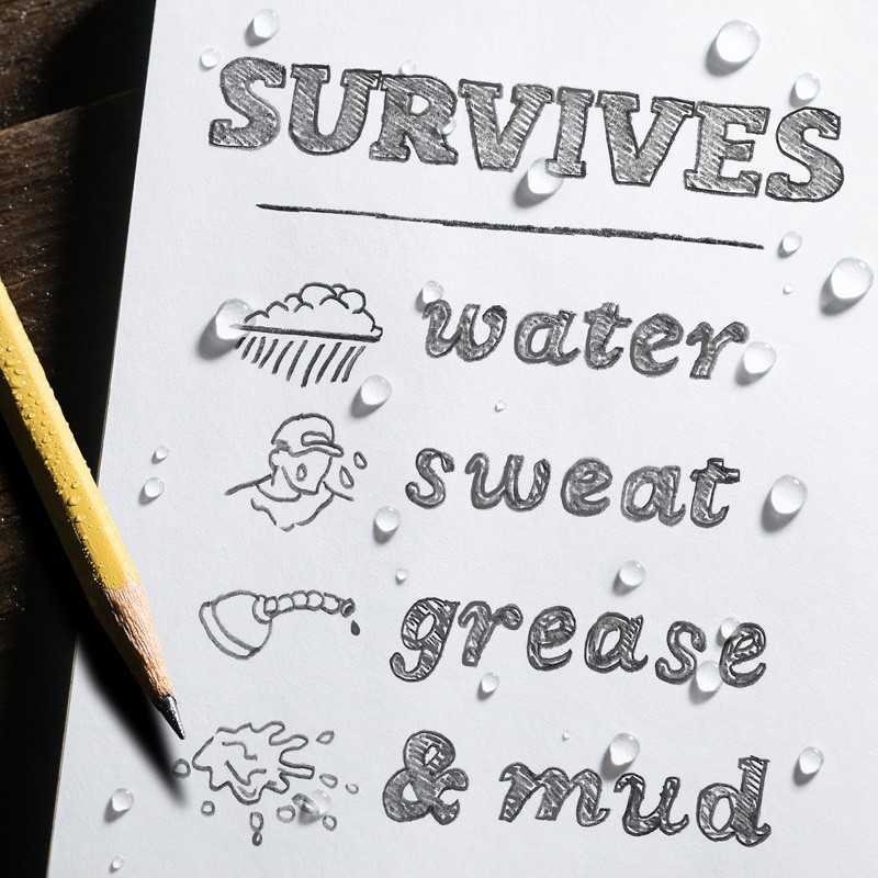 • Με 100 ειδικά επεξεργασμένες σελίδες με αντοχή στο νερό, τον ιδρώτα, τη βροχή, τη λάσπη, τα λάδια