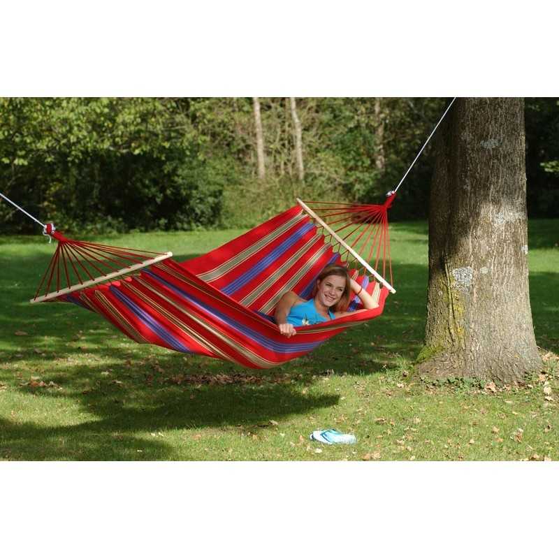 Η αιώρα Aruba Cayenne στηρίζεται σε δύο ισχυρά ξύλα οξιάς, μήκους 80 cm το καθένα, με ειδικό σχεδιασμό ώστε η αιώρα να παραμένει πάντα ανοιχτή και τεντωμένη. Αντέχει σε βάρος έως 180 kg.