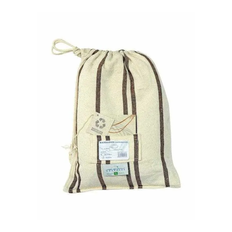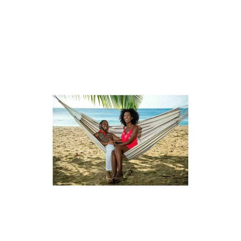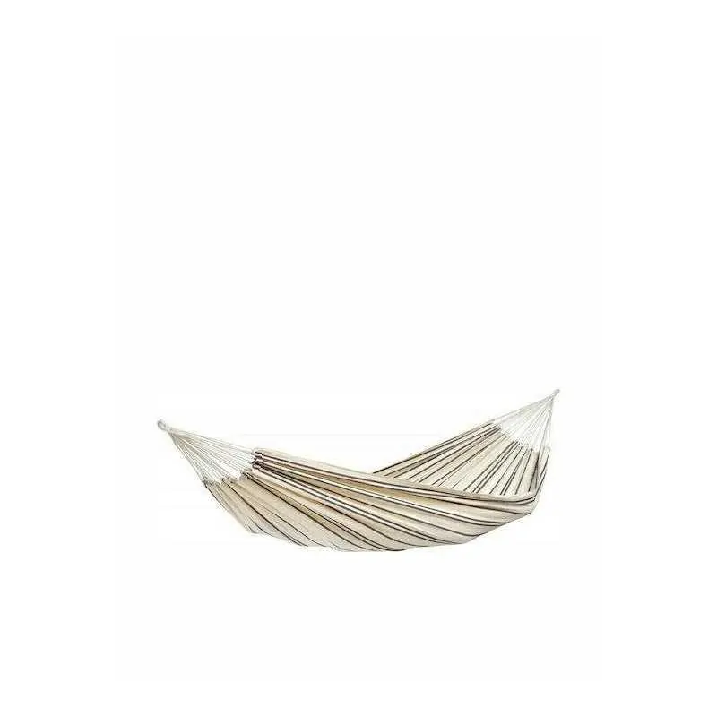 Κλασικός σχεδιασμός σε μια πανέμορφη αιώρα δύο ατόμων. Κατασκευασμένη από 85% ανακυκλωμένο βαμβάκι και 15% πολυεστέρα, είναι πολύ δροσερή και ταυτόχρονα πολύ ανθεκτική αφού αντέχει συνολικό βάρος έως 200 kg. Εξαιρετική επιλογή αιώρας με πολύ καλή σχέση κόστους-απόδοσης.