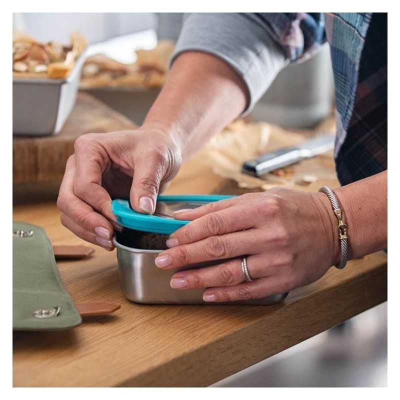 Το δοχείο φαγητού της Klean Kanteen έχει καπάκι από ανοξείδωτο ατσάλι και σιλικόνη, το οποίο ασφαλίζει ώστε να μην υπάρχουν διαρροές. Επιπλέον, έχει κατασκευαστεί χωρίς BPA και πλαστικά, που το καθιστά απόλυτα ασφαλές για τη μεταφορά και αποθήκευση του φαγητού σας.