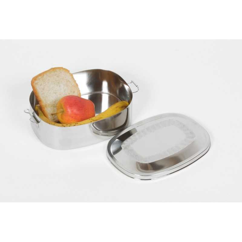 Μεγάλο ανοξείδωτο ορθογώνιο δοχείο πολλών χρήσεων. Ασφαλίζει με 2 clips που βρίσκονται γύρω από το δοχείο. Είναι ιδανικό για την αποθήκευση και μεταφορά του φαγητού του παιδιού στο νηπιαγωγείο και το σχολείο, γιατί είναι εύχρηστο και ανθεκτικό σε χτυπήματα, ενώ επίσης αντέχει να μπει στο φούρνο για το ζέσταμα του φαγητού. Είναι επίσης χρήσιμο και για πολλές άλλες χρήσεις, όπως για παράδειγμα η αποθήκευση μικροαντικειμένων, η δημιουργία ενός μίνι φαρμακείου, η αποθήκευση χρημάτων κ.λπ. Μπορεί να χρησιμοποιηθεί ως σκεύος μαγειρικής πάνω σε εστία, αρκεί να αφαιρέσετε το καπάκι. Δεν περιλαμβάνει στεγανοποιητικό λάστιχο.