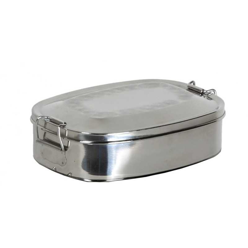 Μικρό ανοξείδωτο ορθογώνιο δοχείο πολλών χρήσεων. Ασφαλίζει με 2 clips που βρίσκονται γύρω από το δοχείο. Είναι ιδανικό για την αποθήκευση και μεταφορά του φαγητού του παιδιού στο νηπιαγωγείο και το σχολείο, γιατί είναι εύχρηστο και ανθεκτικό σε χτυπήματα, ενώ επίσης αντέχει να μπει στο φούρνο για το ζέσταμα του φαγητού. Είναι επίσης χρήσιμο και για πολλές άλλες χρήσεις, όπως για παράδειγμα η αποθήκευση μικροαντικειμένων, η δημιουργία ενός μίνι φαρμακείου, η αποθήκευση χρημάτων κ.λπ. Μπορεί να χρησιμοποιηθεί ως σκεύος μαγειρικής πάνω σε εστία, αρκεί να αφαιρέσετε το καπάκι. Δεν περιλαμβάνει στεγανοποιητικό λάστιχο.