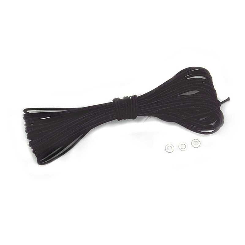 Μαύρο ελαστικό σκοινί μεγάλης ελαστικότητας (έως 120%) και αντοχής. Χρήσιμο για την αντικατάσταση του ελαστικού σκοινιού στις μπανέλες της σκηνής, για την επιδιόρθωση ελαστικών σκοινιών σε σακίδια και σακ βουαγιάζ κ.α. Περιλαμβάνονται και ροδέλες για την τοποθέτηση του σκοινιού σε μπανέλες διαμέτρου 12 mm.