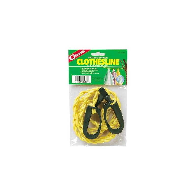 Ελαστικό σκοινί για άπλωμα ρούχων. Πρακτικό και εύκολο στο κουβάλημα, είναι ιδανικό για κατασκηνωτές, πεζοπόρους και εκδρομείς που σκοπεύουν να περάσουν μερικές μέρες στη φύση. Ιδανικό επίσης για ταξίδια, για το ξενοδοχείο ή την παραλία όπου θέλουμε να στεγνώσουμε 2-3 ρούχα γρήγορα και εύκολα. Το πλεονέκτημα είναι ότι δεν χρειάζονται μανταλάκια ρούχων, καθιστώντας το πρακτικό στη χρήση και ελαφρύ στη μεταφορά. Απλώς στερεώστε το σχοινί σε δύο σταθερά σημεία, τοποθετήστε τα ρούχα ανάμεσα στα δύο νήματα του ελαστικού σχοινιού και η πίεση θα κρατήσει τα ρούχα σας στη θέση τους!