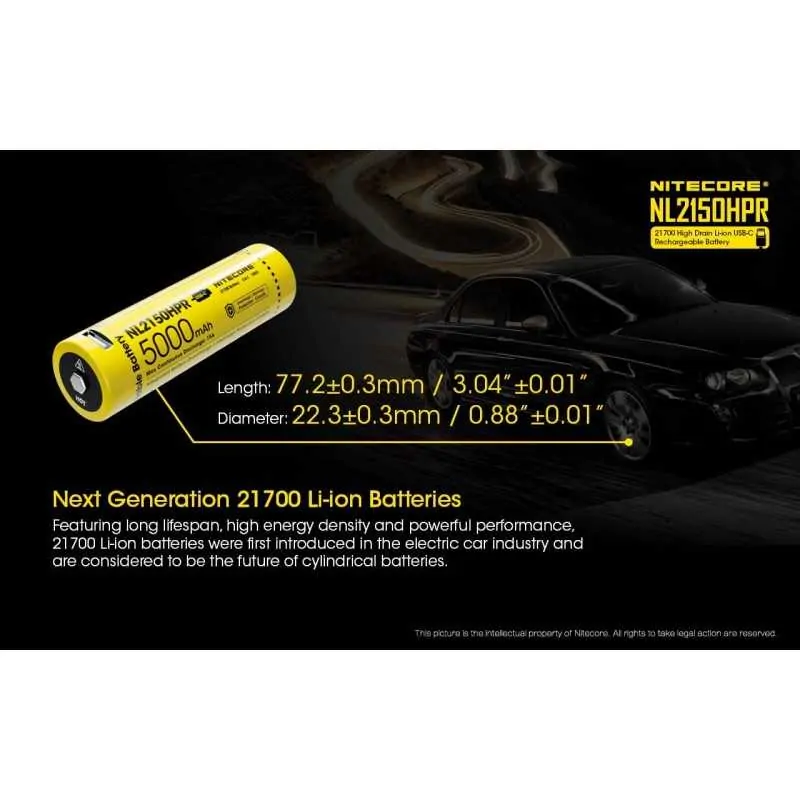 • Συμβατή με την σειρά φορτιστών της Nitecore I, D, UM & SC