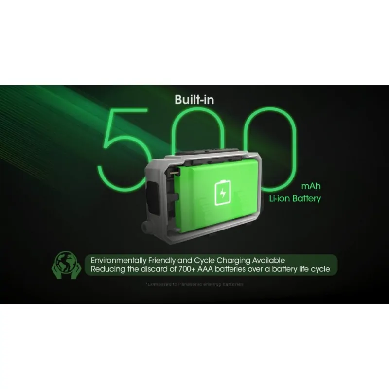 • Λειτουργεί με 1 ενσωματωμένη επαναφορτιζόμενη μπαταρία ιόντων λιθίου 500mAh (περιλαμβάνεται)