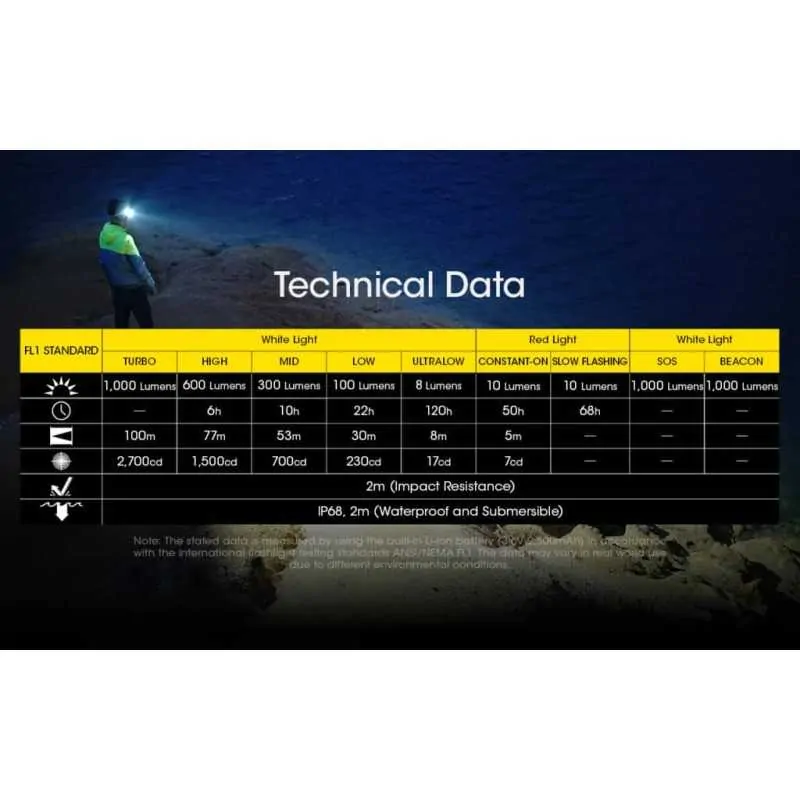1. Turbo - 1000 lumens: ολιγόλεπτος μέγιστος χρόνος λειτουργίας