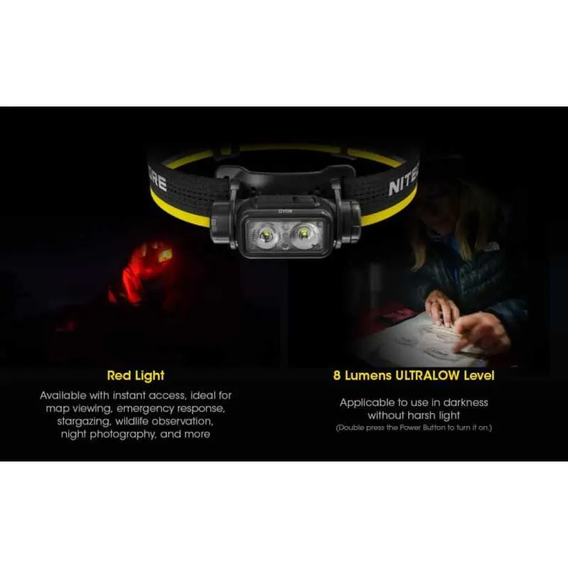 Επαναφορτιζόμενος φακός κεφαλής LED της Nitecore με πολύ φωτεινά, τελευταίας τεχνολογίας LED. Η δυνατότητα επαναφόρτισης είναι κάτι που του προσδίδει ιδιαίτερη ευελιξία αφού μπορείτε να τον φορτίσετε οπουδήποτε με ένα απλό καλώδιο USB-C, χωρίς να κουβαλάτε ή να ψάχνετε για μπαταρίες αν είστε κάπου απομακρυσμένα. Διαθέτει τις παρακάτω λειτουργίες φωτισμού: