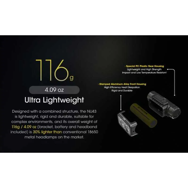 • Ο ελαφρύτερος φακός κεφαλής με μπαταρία 18650