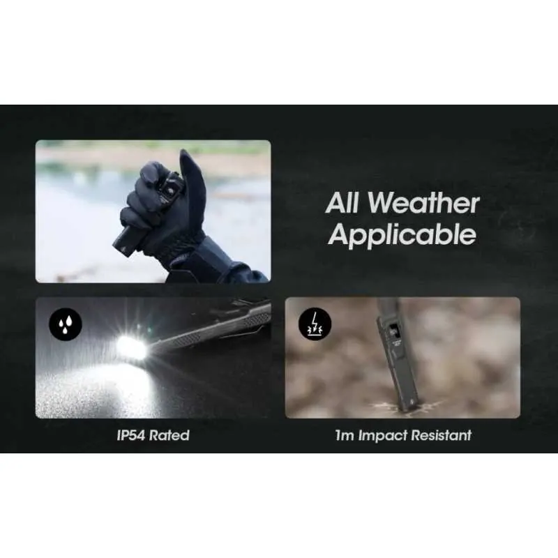 Εξελιγμένη τεχνολογία διακοπής του ρεύματος (APC). Μία πολύ χαμηλή κατανάλωση ρεύματος του 1μΑ παρέχει την δυνατότητα να παραμένει ο φακός σε κατάσταση αναμονής για 365 ημέρες. Επαναφόρτιση από θύρα USB-C με ένα εξαιρετικό κάλυμμα προστασίας. Η θύρα φόρτισης USB-C δεν απαιτεί φορά στην τοποθέτηση του καλωδίου ενώ παράλληλα το κάλυμμα της που είναι κατασκευασμένο από ανθεκτικά PC υλικά προστατεύει αποτελεσματικά από την σκόνη και τα χτυπήματα. Διαθέτει δύο προγράμματα κλειδώματος: