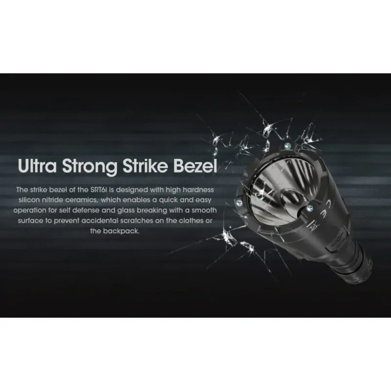 Αξεπέραστη απόδοση που φθάνει τα 2100 Lumens χρησιμοποιώντας ένα LED υψηλής απόδοσης και ένα οπτικό σύστημα που συνδυάζει τις τεχνολογίες ψηφιακών οπτικών ακριβείας και την κρυστάλλινη επίστρωση ο STR6i έχει μέγιστη ισχύ φωτισμού που φθάνει τα 2100 Lumens , περίπου 125% μεγαλύτερη από τους φακούς της προηγούμενης γενιάς , ιδανικός για επιχειρησιακή εφαρμογή , αναζήτηση , περιπολίες και αυτοάμυνα. Η μέγιστη απόσταση της δέσμης φθάνει τα 510 μέτρα! Μέγιστη ένταση που φθάνει τα 65200 cd (κεριά) μπορεί να παρέχει μέγιστη απόσταση δέσμης που φθάνει τα 510 μέτρα καθιστώντας τον φακό ιδανικό για νυχτερινή αναζήτηση και πολλά άλλα. Εξαιρετικά ισχυρός εμπρόσθιος δακτύλιος κρούσης. Ο δακτύλιος κρούσης του SRT6i είναι σχεδιασμένος με εξαιρετικής σκληρότητας κεραμικές ακίδες νιτριδίου του πυριτίου, που επιτρέπουν την χρήση του φακού για αυτοάμυνα και θραύση κρυστάλλων ενώ παράλληλα η επιφάνεια των ακίδων είναι ομαλή και δεν προκαλεί ατυχή γδαρσίματα στα ρούχα ή το σακίδιο. Ο επιχειρησιακός σχεδιασμός σε σχήμα U του οπίσθιου διακόπτη προστατεύει από ατυχή ενεργοποίηση, επιτρέπει την κάθετη στήριξη του φακού στην ουρά του και επιτρέπει την εύκολη τοποθέτηση στο λουράκι καρπού.
