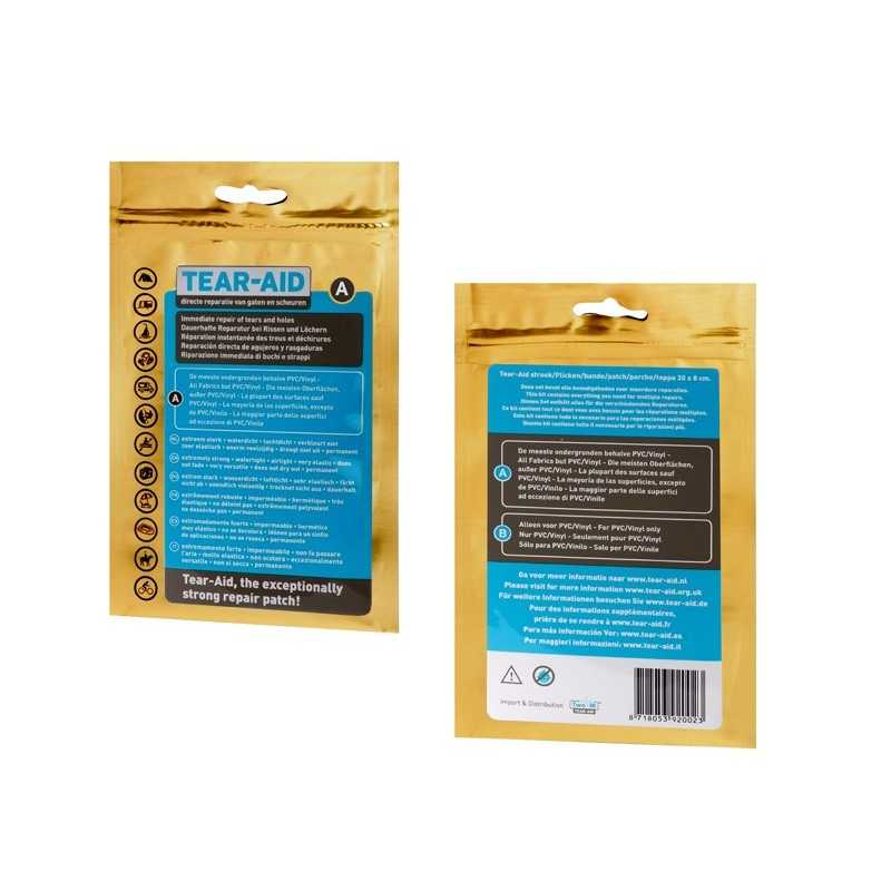 Το κορυφαίο επισκευαστικό υλικό της Tear-Aid είναι διαφανές για να ταιριάζει παντού και επισκευάζει στη στιγμή σχισμές, τρύπες και ραγίσματα σχεδόν σε όλα τα υλικά. Πάρα πολύ ισχυρό και ελαστικό, είναι ταυτόχρονα αδιάβροχο με μεγάλη αντοχή στις καιρικές συνθήκες αλλά και σε συνθήκες συνεχούς πίεσης. Το Tear Aid έχει επίσης μεγάλη αντοχή στις ακτίνες UV και δεν χρειάζεται κόλλες ή άλλα συνδετικά υλικά, αφού διαθέτει πολύ ισχυρή κόλλα που δημιουργεί πολύ δυνατούς δεσμούς με όλα σχεδόν τα υλικά. Ιδανικό για την επισκευή τεντών, σακιδίων, μπουφάν, μουσαμάδων, ιστίων, φουσκωτών προϊόντων, σάκων, υπνόσακων, πανιών, στρωμάτων κλπ.