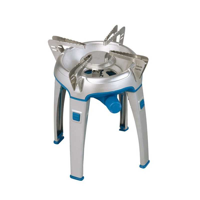 Σταθερή και πολύ ανθεκτική εστία γκαζιού για ασφαλές μαγείρεμα ακόμα και με βαριά ή πλατιά σκεύη. Είναι μια πολύ καλή λύση για μεγάλες παρέες κατασκηνωτών που μαγειρεύουν για 3-4 άτομα τουλάχιστον κάθε φορά. Τα 4 πόδια είναι αποσυναρμολογούμενα για ευκολία στη φύλαξη και τη μεταφορά. Η εστία Bivouac διαθέτει πιεζοηλεκτρονική ανάφλεξη που είναι πολύ πρακτική, γιατί δεν χρειάζεται να ψάχνετε για σπίρτα ή αναπτήρα κάθε φορά. Είναι συμβατή με τις φιάλες γκαζιού CV270+, CV300+ and CV470+. Παραδίδεται σε θήκη μεταφοράς (η φιάλη δεν περιλαμβάνεται).