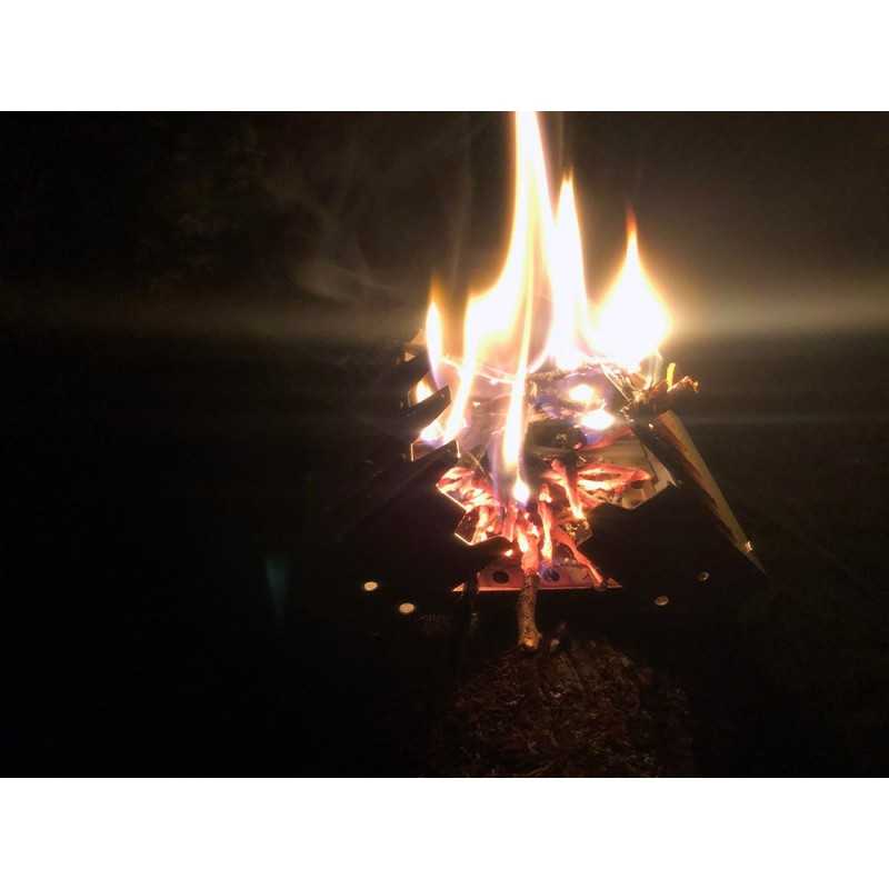 Η εστία στερεού καυσίμου της Origin Outdoors είναι απίθανα μικρή και ελαφριά. Κατασκευασμένη από γαλβανισμένο ατσάλι, είναι πολύ ανθεκτική και αξιόπιστη στη λειτουργία της. Όταν είναι διπλωμένη καταλαμβάνει ελάχιστο χώρο, ενώ όταν την ανοίξετε μπορείτε να τοποθετήσετε πάνω της άφοβα το μπρίκι σας ή οποιοδήποτε άλλο μικρό σκεύος μαγειρικής έχετε διαθέσιμο (τηγάνι ή κατσαρολάκι). Ανάλογα με το σκεύος ή το ύψος στο οποίο θέλετε να μαγειρέψετε, μπορείτε να ρυθμίσετε την εστία σε 2 θέσεις μαγειρέματος (αλλάζοντας την γωνία κλίσης).