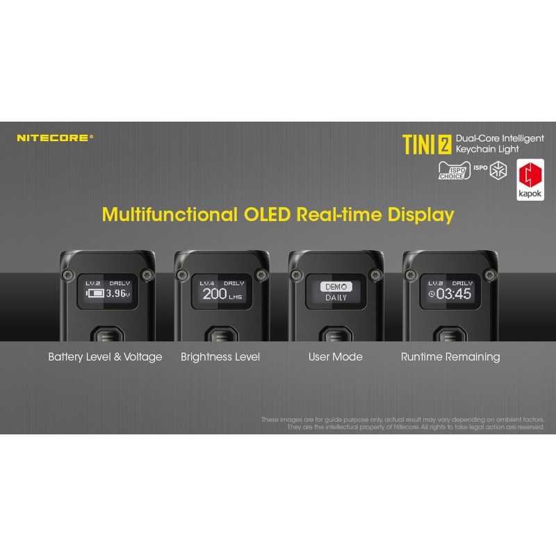 • Πολύ-λειτουργική οθόνη OLED εμφανίζει σε πραγματικό χρόνο τα Lumens, τη τάση της μπαταρίας, τη διάρκεια λειτουργίας κ.α.