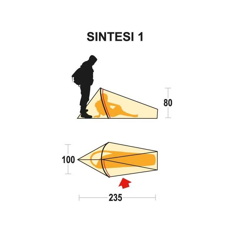 Πανάλαφρη σκηνή κάμπινγκ 1 ατόμου, ιδιαίτερα χρήσιμη για ποδηλάτες και πεζοπόρους που χρειάζονται μια μικρή σκηνή στα είδη camping τους με άριστη προστασία αδιαβροχοποίησης και ελάχιστο βάρος. Με μέγεθος συσκευασίας μόλις 14x30cm, η μικρή αυτή σκηνή χωράει άνετα στο σακίδιό σας ή στις τσάντες του ποδηλάτου σας. Όλα τα υφάσματα της σκηνής Sintesi 1 (ύφασμα, πάτωμα) έχουν υποστεί ειδική επεξεργασία με επιβραδυντικό φλόγας το οποίο επιβραδύνει την εξάπλωσή της αν τυχόν ακουμπήσει τη σκηνή.