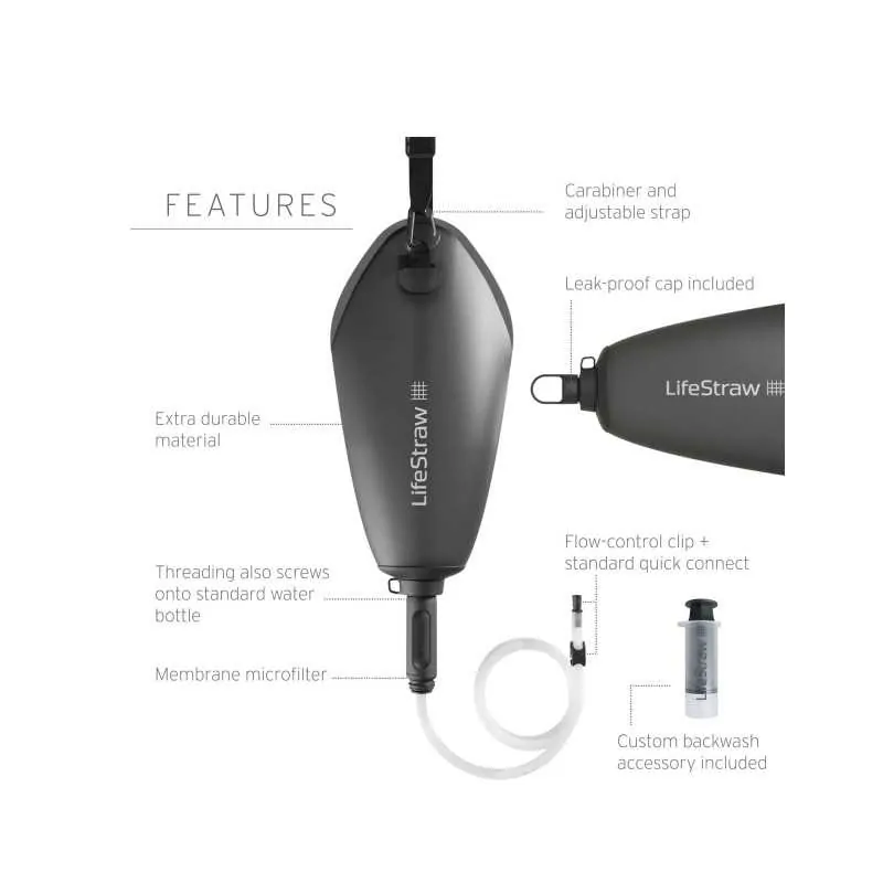 Το Lifestraw Peak Gravity πληροί όλες τις αυστηρές προδιαγραφές ποιότητας που έχει θέσει για τέτοια προϊόντα ο Οργανισμός Τροφίμων και Φαρμάκων (FDA). Δεν απαιτεί ηλεκτρικό ρεύμα, μπαταρίες ή ανταλλακτικά και δεν αφήνει καμία υπολειμματική γεύση στο νερό καθώς δεν χρησιμοποιεί ιώδιο, χημικά ή άλλα πρόσθετα.