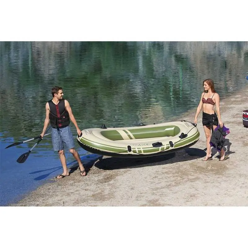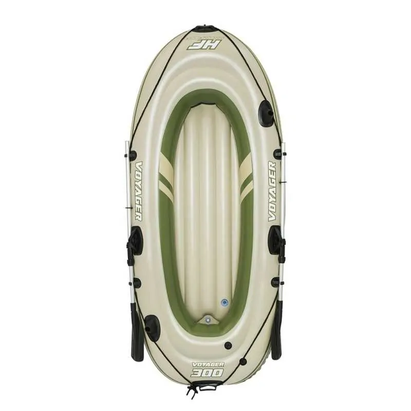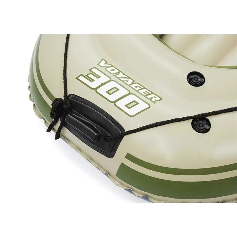 Η βάρκα Voyager 300 της Bestway είναι η ιδανική value for money βάρκα για τους λάτρεις της βαρκάδας αλλά και του ψαρέματος, κατάλληλη για 2 άτομα. Αντέχει σε βάρος έως 170 kg και είναι κατασκευασμένη από υψηλής αντοχής PVC. Διαθέτει μια υποδοχή για 1 καλάμι ψαρέματος. Επιπλέον διαθέτει σχοινί πιασίματος περιμετρικά σε όλη την βάρκα, υποδοχές για στήριξη των κουπιών ενώ στη συσκευασία περιλαμβάνονται σετ κουπιών και σετ επισκευής.