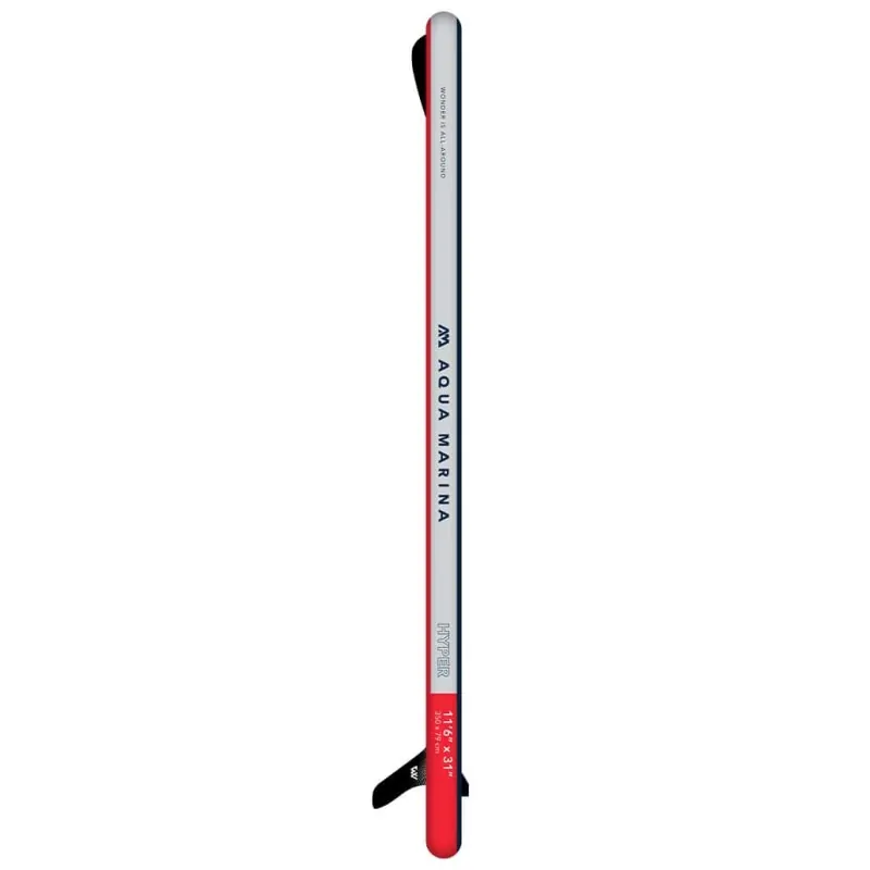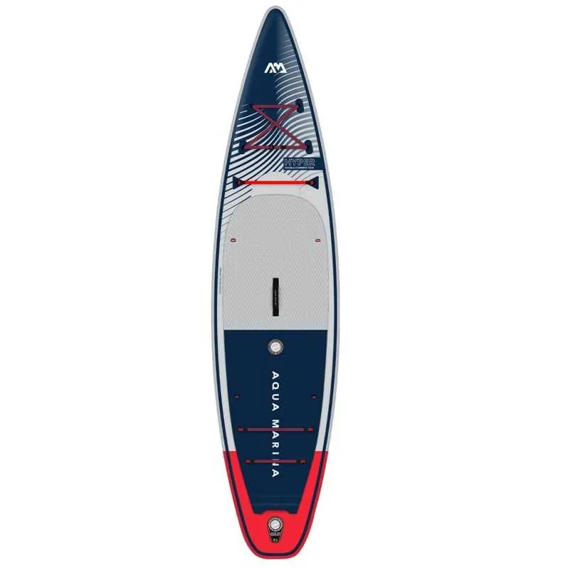Το SUP Aqua Marina Hyper έχει σχεδιαστεί με γνώμονα την ταχύτητα και την ευελιξία, ιδανικό για όσους θέλουν να καλύψουν αποστάσεις γρήγορα. Η σανίδα SUP Aqua Marina Hyper, είναι σχεδιασμένη για χρήση σε όλες τις συνθήκες και θεωρείται κατάλληλη για αρχάριους αλλά και έμπειρους χρήστες. Ιδανική για ήρεμα νερά, που δε χρειάζονται συνεχείς ελιγμοί ή σε νερά με μικρούς κυματισμούς. Το σύστημα Tail Kick Pad στο πίσω μέρος της σανίδας προσφέρει μεγαλύτερη ευελιξία και γρήγορη αλλαγή κατεύθυνσης απ'ότι τα υπόλοιπα SUP της σειράς All-Around. Διαθέτει επίσης 2 θαλάμους, ο ένας φουσκώνει με πίεση 15 psi (εξωτερικός θάλαμος) ενώ ο κεντρικός θάλαμος με πίεση 10 psi. Οι Ο έξτρα θάλαμος 48 lt δημιουργεί επιπλέον άνωση, κάτι το οποίο προσδίδει αυξημένη ασφάλεια ειδικά σε ταξίδια open water ή μακρινών αποστάσεων.