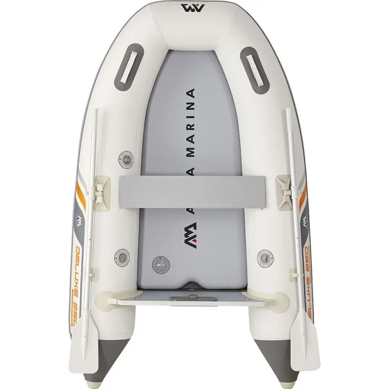 Η Φουσκωτή βάρκα DELUXE της Aqua Marina διαθέτει πλώρη τύπου U, κατασκευασμένη με την High Frequency Welding Technology της Aqua Marina στους πλαϊνούς θαλάμους σε συνδυασμό με το Drop Stitch Light Technology στο πάτωμα προσφέρει ασφάλεια και σταθερότητα, είναι συμπαγής αλλά και πολύ ελαφριά. Είναι ιδανική για βάρκα αναψυχής με μεγάλα μπαλόνια και αρκετά ευρύχωρη ώστε να μπορούν να μεταφέρει όλο τον εξοπλισμό σας.