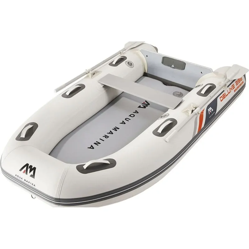 Η Φουσκωτή βάρκα DELUXE της Aqua Marina διαθέτει πλώρη τύπου U, κατασκευασμένη με την High Frequency Welding Technology της Aqua Marina στους πλαϊνούς θαλάμους σε συνδυασμό με το Drop Stitch Light Technology στο πάτωμα προσφέρει ασφάλεια και σταθερότητα, είναι συμπαγής αλλά και πολύ ελαφριά. Είναι ιδανική για βάρκα αναψυχής με μεγάλα μπαλόνια και αρκετά ευρύχωρη ώστε να μπορούν να μεταφέρει όλο τον εξοπλισμό σας.