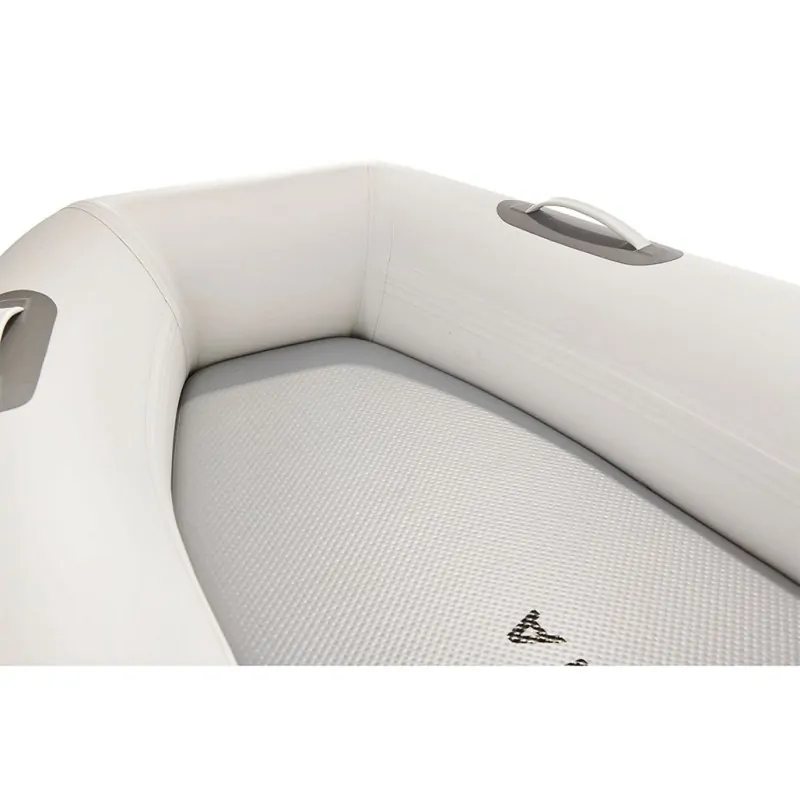Είναι κατασκευασμένη από υψηλής ποιότητας ενισχυμένο PVC και έχει ενσωματωμένο σύστημα ασφάλισης κουπιών για ευκολότερη κωπηλασία. Συμπαγής χειρολαβές μεταφοράς και ανοξείδωτος κρίκος πλώρης. Βαλβίδα αποστράγγισης και προστατευμένη περιμετρικά από υψηλής ποιότητας καουτσούκ. Τέλος διαθέτει βάση μηχανής με μέγιστη ισχύς 11KW / 15HP.