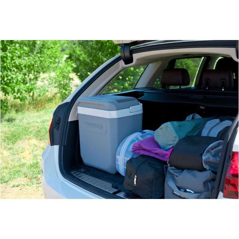 Εξαιρετικής ποιότητας ηλεκτρικό ψυγείο της Campingaz που λειτουργεί στα 12 Volt. Τα φαγητά και τα αναψυκτικά σας θα παραμείνουν έως 20°C χαμηλότερα από τη θερμοκρασία περιβάλλοντος. Ο ανεμιστήρας του Powerbox Plus είναι αθόρυβος (έως 39 dB) ώστε να μην ενοχλεί ακόμα και το βράδυ. Το Powerbox έχει ειδική ηλεκτρονική προστασία για να μην αποφορτίζει την μπαταρία του αυτοκινήτου. Επιπλέον χάρη στο σύστημα Freezeguard, το ψυγείο θα σταματήσει την ψύξη όταν η θερμοκρασία πέσει στους 2°C (για να μην παγώσουν τα φαγητά, το νερό ή τα αναψυκτικά σας). Η εσωτερική επένδυση είναι πολύ λεία και διαθέτει ειδικό αντιμικροβιακό υλικό ενσωματωμένο στο υλικό του ψυγείου, χαρακτηριστικό που προσφέρει αντιμικροβιακή προστασία, ελαχιστοποίηση των μυρωδιών και εύκολο καθάρισμα. Το Powerbox είναι κατασκευασμένο με πολύ παχύ τοίχωμα πολυαιθυλενίου, για μεγιστοποίηση της μόνωσης PU και μείωση των απωλείων προς τα έξω. Έτσι, ακόμα και αν βγάλετε το Powerbox Plus από το ρεύμα, αυτό θα κρατήσει για ώρες το περιεχόμενο κρύο. Τέλος, χάρη στο σύστημα Click and Lock το καπάκι σφραγίζει ερμητικά κάνοντας ένα χαρακτηριστικό "κλικ", για να είστε σίγουροι.