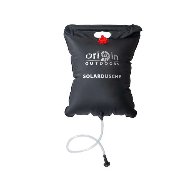 Η κλασική ηλιακή ντουζιέρα που έχουν αγαπήσει χρόνια τώρα όλοι οι κατασκηνωτές. Αφήστε την για 3 ώρες στον ήλιο και η θερμοκρασία του νερού θα ανέβει πάνω από τους 30°C ώστε να απολαύσετε το μπάνιο σας. Με διακόπτη ON/OFF που ρυθμίζει τη ροή του νερού και σκοινί με άγκιστρο για να την κρεμάσετε κάπου ψηλά. Η ντουζιέρα τυλίγεται σε ρολό όταν αδειάσει εξοικονομώντας χώρο και διευκολύνοντας τη μεταφορά της. Ιδανική για την κατασκήνωση ή για απομακρυσμένες περιοχές όπου η πρόσβαση σε τρεχούμενο νερό είναι δύσκολη. Διατίθεται σε 2 μεγέθη.