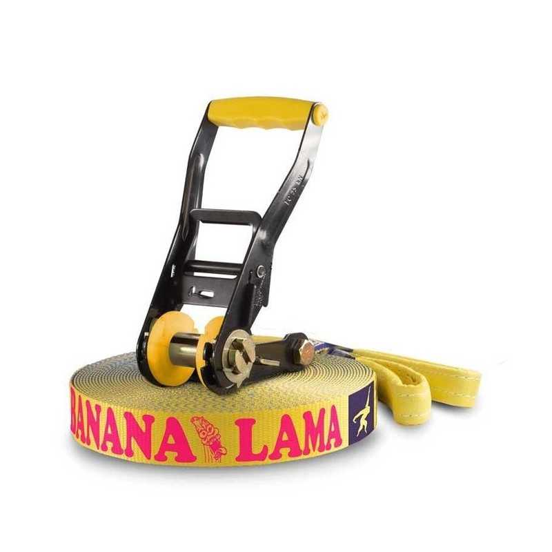 Το μοντέλο Banana Lama της Gibbon είναι τέλειο για αρχάριους αλλά και προχωρημένους. Είναι κατάλληλο για ενήλικες αλλά και παιδιά. Το σετ περιλαμβάνει όλα όσα χρειάζονται για να αρχίσετε να ισσοροπείτε πάνω στον ιμάντα. Το treewear τυλίγεται και στερεώνεται εύκολα γύρω από τον κορμό του δέντρου με velcro. Ο ιμάντας έχει μήκος 15 m και πλάτος 3,5 cm όπου στα πρώτα σας βήματα θα νιώσετε τις ομαλές δυναμικές ιδιότητες αυτού του ειδικού πλέγματος ιμάντα. Ο Banana Lama είναι εξαιρετικά εύκολος στο περπάτημα, αλλά είναι επίσης καλός για άλματα και στατικές κινήσεις. Το σετ περιλαμβάνει επίσης την πατενταρισμένη καστάνια της Gibbon.