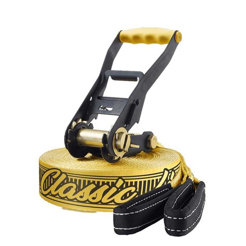 Το μοντέλο Classicline XL είναι η αναβαθμισμένη έκδοση του best seller της Gibbon με μεγάλο μήκος ιμάντα (25m), κατάλληλο για προχωρημένους ισορροπιστές. Το σετ περιλαμβάνει όλα όσα χρειάζονται για να αρχίσετε να ισσοροπείτε πάνω στον ιμάντα. Ο ιμάντας Classicline XL έχει μήκος 22,5 m και πλάτος 5 cm και παρουσιάζει μικρή προς κανονική ελαστικότητα. Όσο λιγότερος ελαστικός είναι τόσο πιο εύκολος είναι στην εκμάθηση και τόσο πιο κοντά στο έδαφος μπορεί να στηθεί για μεγαλύτερη ασφάλεια. Το σετ περιλαμβάνει επίσης την πατενταρισμένη καστάνια Ratpad της Gibbon και τον δευτερεύοντα ιμάντα πρόσδεσης των 2,5 m με ενισχυμένη θηλιά για το δέσιμο στη μια πλευρά. Επίσης περιλαμβάνεται προστατευτικό κάλυμμα για την καστάνια για την αποφυγή τραυματισμών.