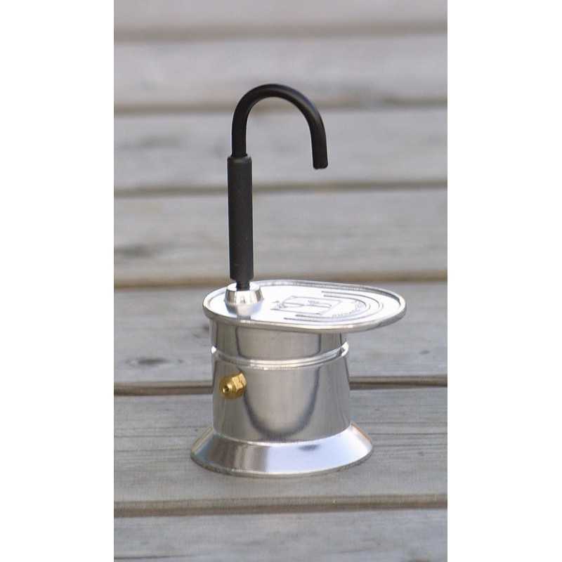 Κλασική καφετιέρα espresso για 1 φλυτζάνι καφέ. Η κατασκευή είναι από αλουμίνιο. Απλά προσθέστε νερό και τους αλεσμένους κόκκους του αγαπημένου σας καφέ και περιμένετε μερικά λεπτά μέχρι να αρχίσει ο βρασμός και η εκχύλιση. Ο καφές θα αρχίσει να τρέχει από την ειδική έξοδο. Το μόνο απόρριμα που δημιουργείται είναι το οργανικό, βιοαποικοδομήσιμο υπόλειμμα των εκχυλισμένων κόκκων καφέ. Ιδανική για το camping και τις καλοκαιρινές διακοπές για καφεδάκι στην αιώρα.