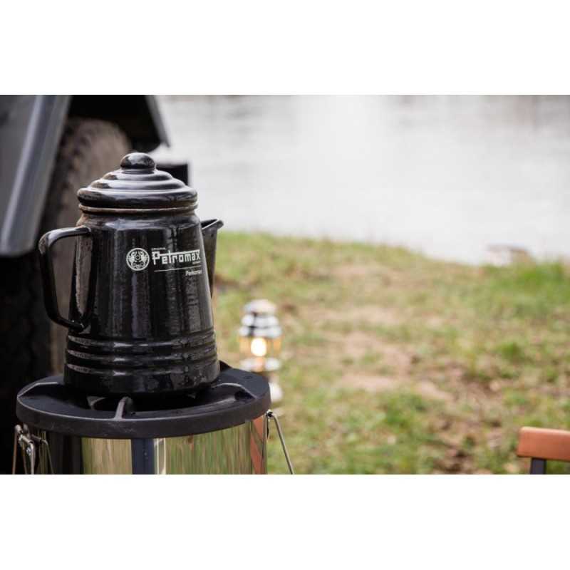 Η καφετιέρα - τσαγιέρα της Petromax είναι ιδανική για να φτιάξετε τσάι ή καφέ. Ο μοναδικός σχεδιασμός αναδίδει όλα τα αρώματα του καφέ και του τσαγιού. Μπορείτε να τη χρησιμοποιήσετε είτε στο BBQ σας και τις εκδρομές σας είτε ακόμη και στην εστία του σπιτιού σας. Η καφετιέρα λειτουργεί όπως μια κλασσική καφετιέρα φίλτρου, και γι'αυτό όσο περισσότερο νερό ρέει στον καφέ σας ή το τσάι σας, τόσο πιο δυνατό θα είναι το ρόφημα που θα έχετε.
