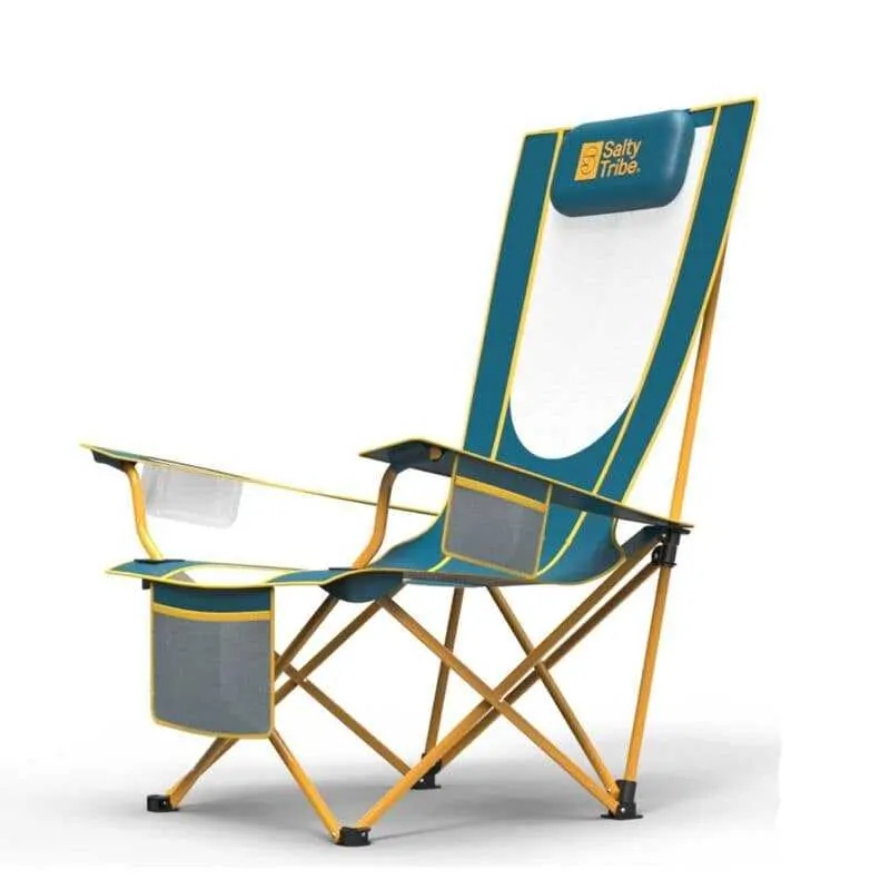 Ιδιαίτερα αναπαυτική καρέκλα camping με ατσάλινο σκελετό και μεγάλη αντοχή σε βάρος έως 120 kg. Ενισχυμένη κατασκευή με πολυεστερικό ύφασμα που έχει μεγάλη αντοχή στην τριβή και στις καταπονήσεις. Η Avades της Salty Tribe είναι μια υψηλής αντοχής καρέκλα camping για να χαλαρώσετε στην παραλία! Ο σκελετός της είναι ατσάλινος, ανθεκτικός στη σκουριά. Το κάθισμα της καρέκλας είναι κατασκευασμένο από πολυεστέρα και δίχτυ για περισσότερη δροσιά και διαθέτει και αποσπώμενο μαξιλαράκι για ακόμη μεγαλύτερη άνεση. Στο δεξί μπράτσο της Avades θα βρέιτε μια θήκη στην οποία μπορείτε να τοποθετήσετε το ρόφημα σας, τη μπύρα σας ή τον καφέ σας, ενώ στο αριστερό μπράτσο υπάρχει θήκη στην οποία μπορείτε να αποθηκεύετε μικροαντικείμενα. Τέλος, στο κάτω μέρος της καρέκλας υπάρχει μια τρίτη θήκη η οποία είναι ιδανική για το βιβλίο ή το αντηλιακό σας.