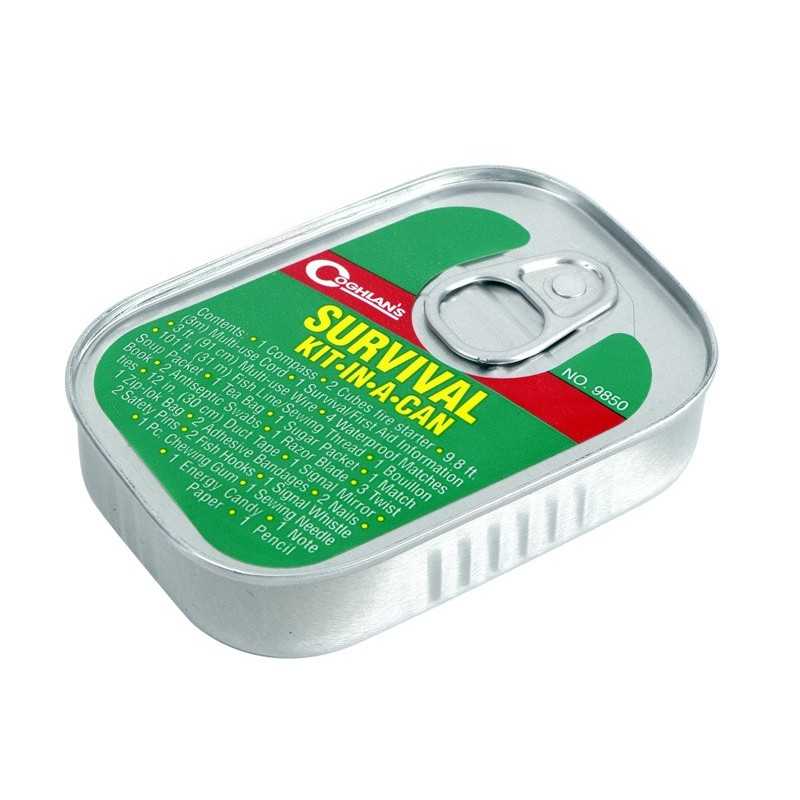 Το Survival Kit της Coghlans περιέχει 38 χρήσιμα (αχρείαστα!) είδη επιβίωσης, απαραίτητα σε καταστάσεις επιβίωσης. Όλα τα είδη επιβίωσης περιλαμβάνονται σε αδιάβροχη θήκη τύπου κονσέρβας. Η κονσέρβα περιέχει: