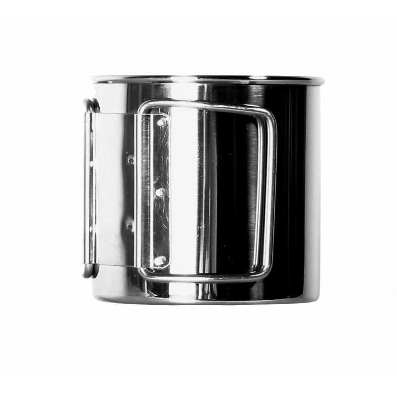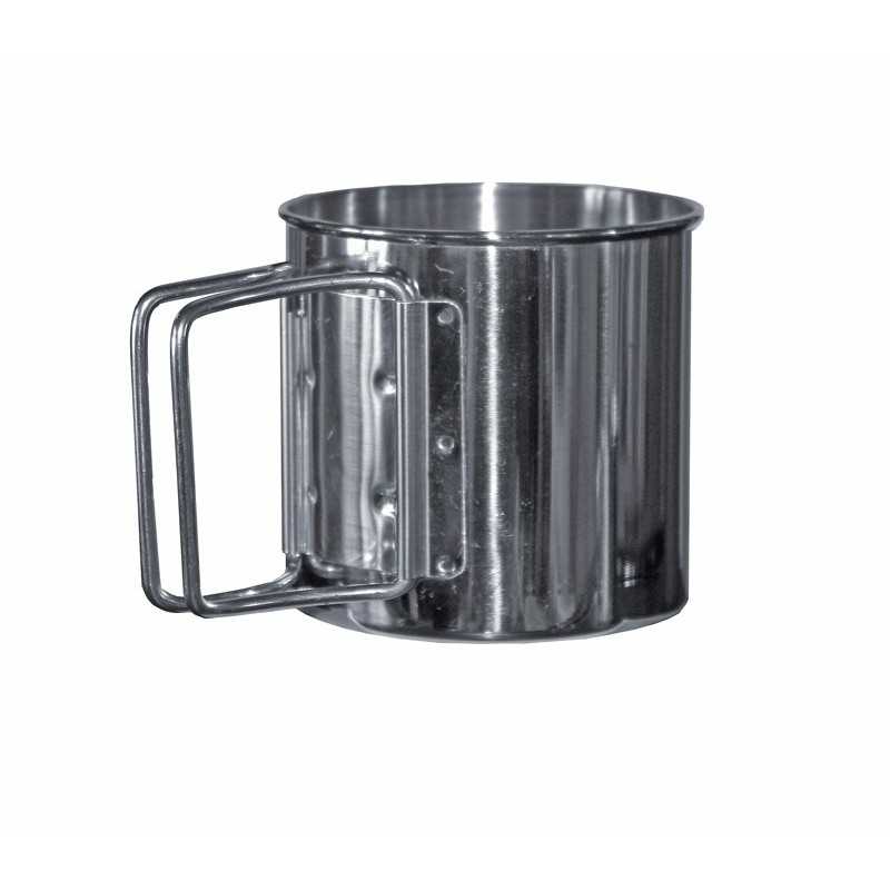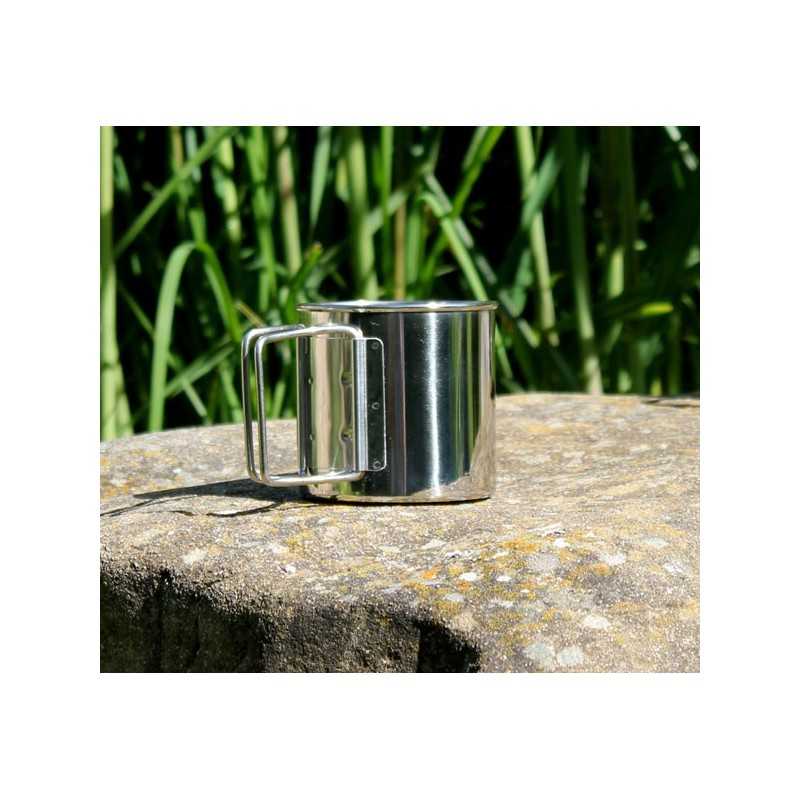 Κλασική ανοξείδωτη κούπα με αναδιπλούμενο χερούλι για να μην πιάνει χώρο στο σακίδιο. Κατασκευασμένη από ανοξείδωτο ατσάλι 18/8, κατάλληλο για τρόφιμα και ποτά. Χωρητικότητα: 350 ml.