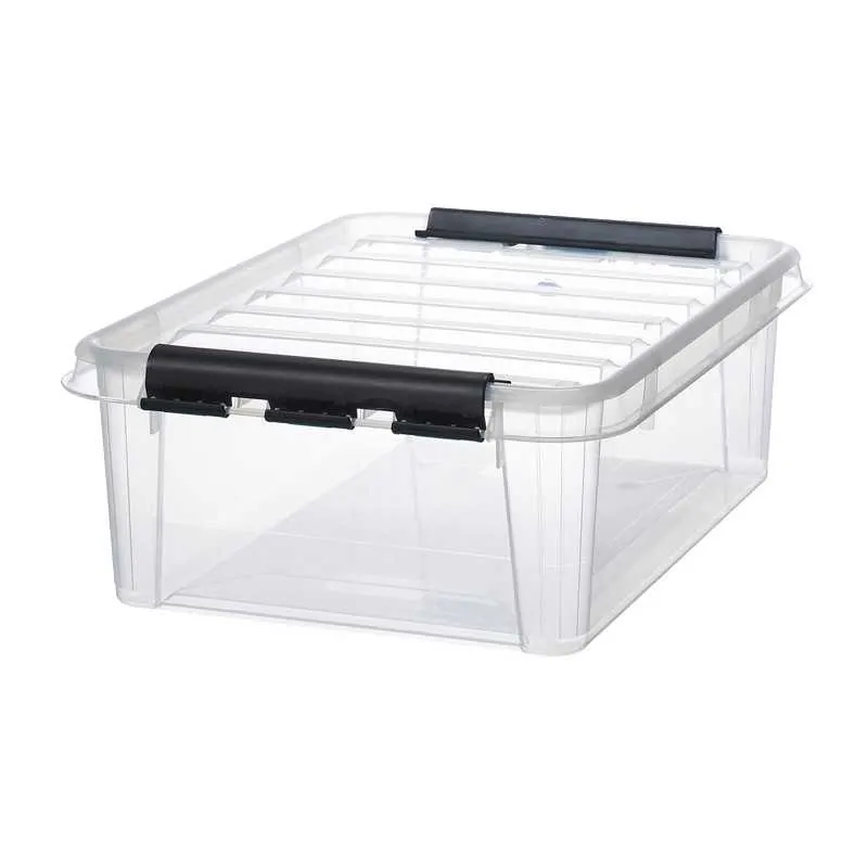 Πρακτικό κουτί αποθήκευσης για μικρά και μεγάλα αντικείμενα. Τα κουτιά είναι αρθρωτά και έτσι μπορούν να στοιβάζονται τέλεια. Με το καπάκι αφαιρεθεί, τα κουτιά μπορούν επίσης να στοιβάζονται μαζί. Τα κλιπ διατηρούν το καπάκι ασφαλές στη θέση τους. Κατάλληλο για την αποθήκευση των τροφίμων.