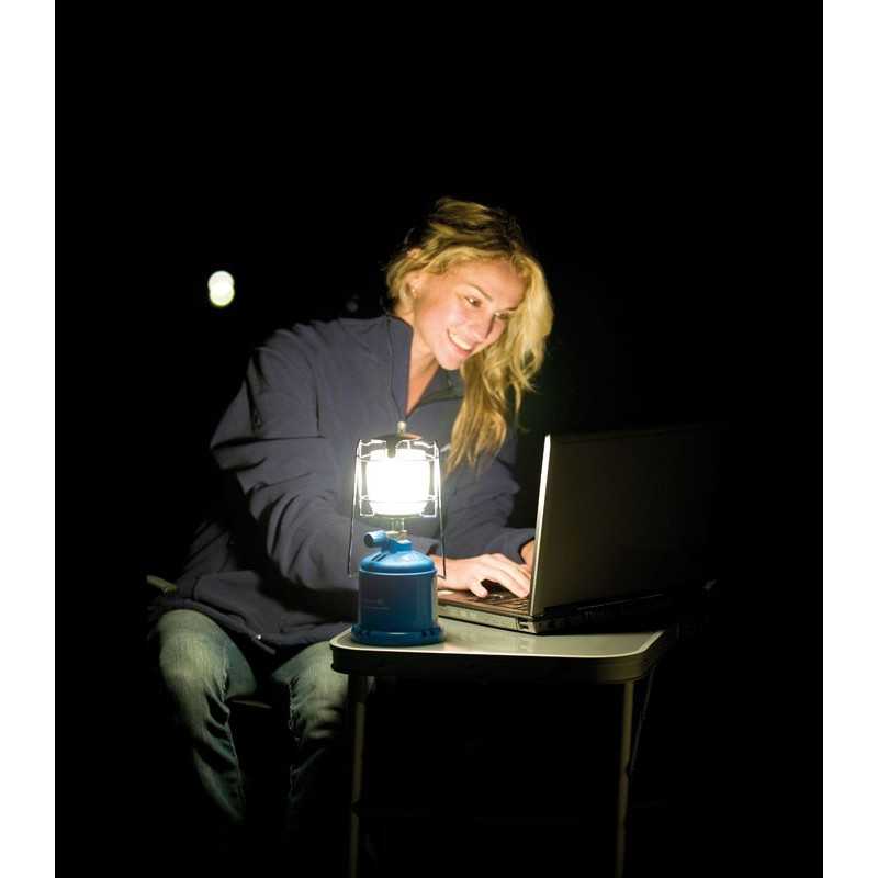Η κλασική λάμπα αερίου της Campingaz για το κάμπινγκ και τις εκδρομές στην ύπαιθρο. Εύκολη στη χρήση, αποδίδει περίπου 80 W φωτισμού που διαρκεί περίπου για 7 ώρες συνεχόμενης λειτουργίας. Χρησιμοποιεί τα μπλε γκαζάκια αερίου.