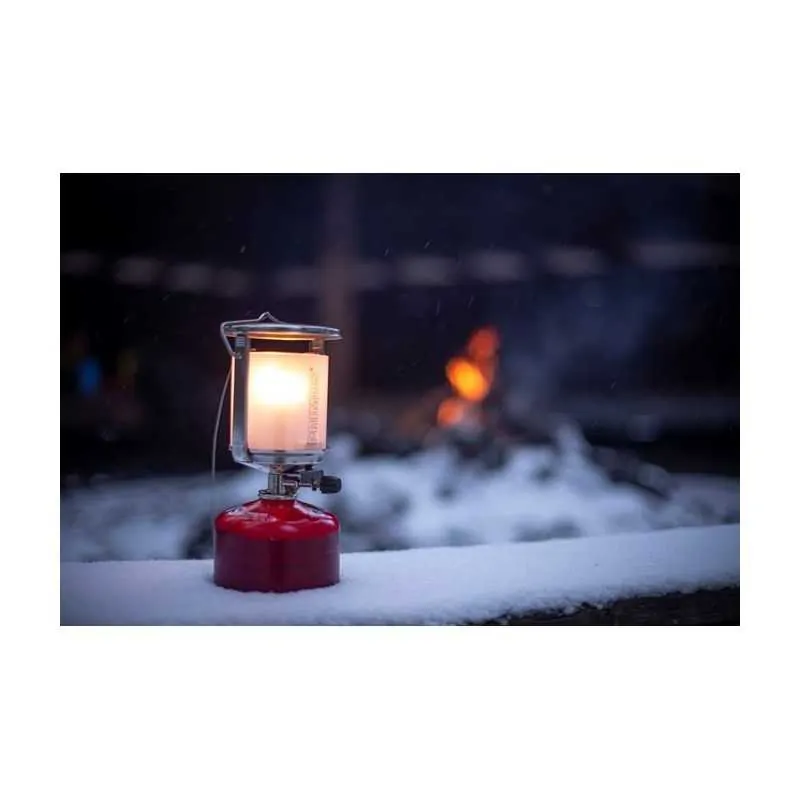 Μια κλασική λάμπα αερίου που είναι ήσυχη χωρίς να αφήνει κατάλοιπα, η MimerLantern μεταδίδει αποτελεσματικά φως και ζεστασιά σε εκείνα τα ψυχρά βράδια, ενώ σας επιτρέπει να απολαύσετε τους ήχους του δάσους. Με απλό και στιβαρό σώμα από ανοξείδωτο ατσάλι, ματ γυαλί και πιεζοηλεκτρική ανάφλεξη, η Mimer lantern ανάβει εύκολα και εκπέμπει έντονο αλλά διάχυτο φως που μπορεί να ρυθμιστεί έως και 330 lumens. Η άκαμπτη προστατευτική θήκη μεταφοράς διασφαλίζει ότι είναι έτοιμη να ανάψει όπου κι αν τη μεταφέρετε. Η ανθεκτική πλαστική θήκη μεταφοράς διατηρεί το φανάρι ασφαλές κατά τη μεταφορά, ενώ το σύστημα ανάρτησης διασφαλίζει ότι μπορείτε να χρησιμοποιήσετε τη λάμπα οπουδήποτε. Περιλαμβάνεται ένα φυτίλι. Κατάλληλη για βιδωτά και κουμπωτά γκαζάκια