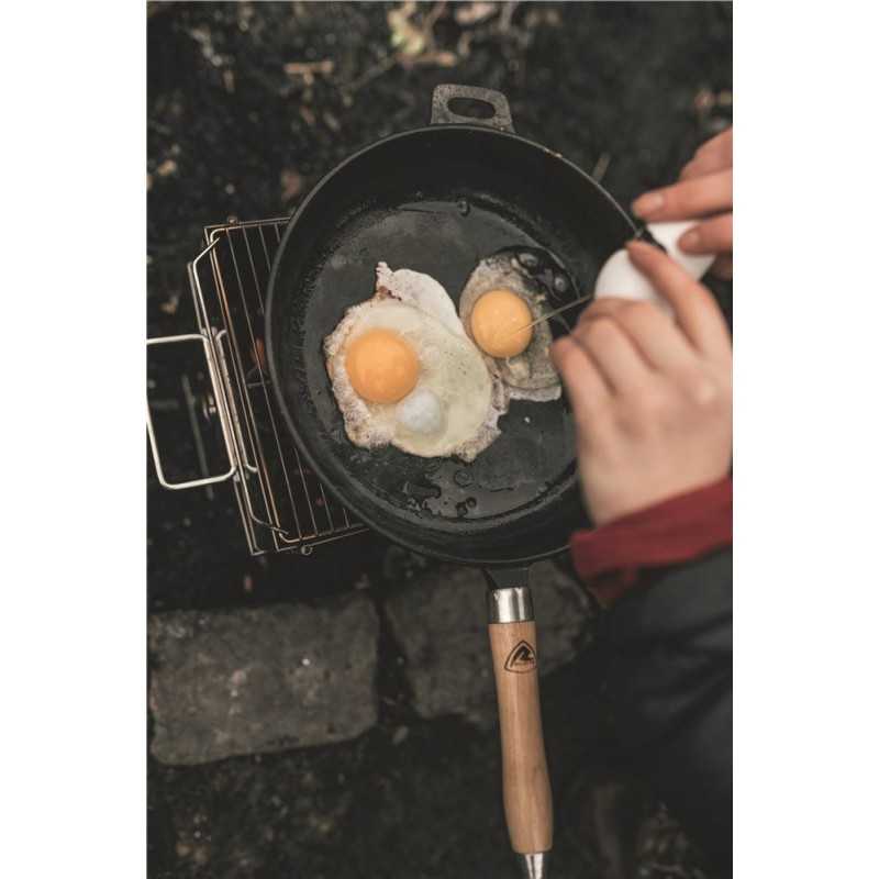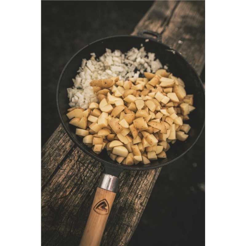 Πολύ όμορφο μαντεμένιο τηγάνι της Robens με απίθανο ξύλινο χερούλι για αυτούς που θέλουν να μαγειρεύουν υγιεινά όπου και να βρίσκονται, στο camping ή στην παραλία. Mπορεί να χρησιμοποιηθεί κατευθείαν πάνω στη φωτιά αλλά και σε όλων των ειδών τις εστίες (κεραμικές, επαγωγικές, γκαζιού ή ηλεκτρικές). Είναι ήδη pre-seasoned, δηλαδή έχει γίνει η απαραίτητη επάλειψη με φυτικό λάδι που δημιουργεί το κατάλληλο αντικολλητικό φιλμ για να μην κολλάει το φαγητό.