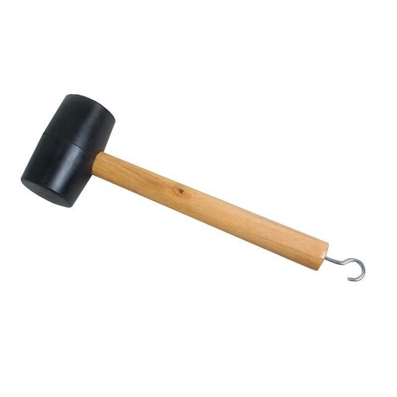 Κλασική ματσόλα με ξύλινη λαβή και γάντζο που διευκολύνει να αφαιρείτε γρήγορα τα πασαλάκια. Τα ελαστικά άκρα της ματσόλας αποτρέπουν να πέσει πολύ δύναμη στα πασαλάκια που μπορεί να τα στραβώσει. Επίσης, το κάρφωμα γίνεται με πολύ λιγότερο θόρυβο και λιγότερη ενόχληση στους υπόλοιπους κατασκηνωτές.