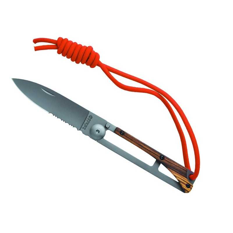 Με βάρος μόλις 45 gr το Papagayo Skinny είναι μια εξαιρετική επιλογή για όσους θέλουν ένα ελαφρύ αλλά ολοκληρωμένο μαχαίρι στις εκδρομές τους. Το Papagayo Skinny έχει σχεδιαστεί έτσι ώστε να έχει το ελάχιστο δυνατό βάρος, χωρίς όμως να υστερεί σε απόδοση. Το Papagayo Skinny διαθέτει σύστημα κλειδώματος της λάμας για ασφάλεια στη χρήση. Διαθέτει μια κοφτερή λάμα μήκους 7,5 cm, με επίστρωση τιτανίου, η οποία είναι κατά το ήμισυ πριονωτή για τις πιο απαιτητικές εφαρμογές. Με όμορφη ξύλινη λαβή και πορτοκαλί κορδόνι paracord για ευκολία και ασφάλεια στη μεταφορά.