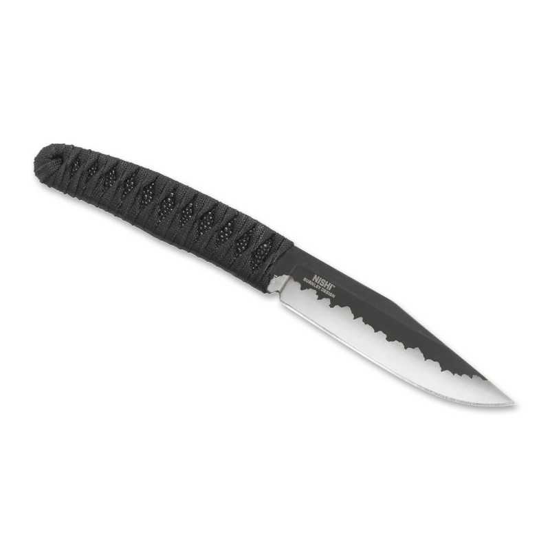 Το μαχαίρι Nishi της CRKT δεν μπορεί να κρύψει τις ιαπωνικές επιρροές του. Ο συνδυασμός αμερικανικού σχήματος λεπίδας και ιαπωνικής λαβής είναι μοναδικός και εμπνέει με μια εντελώς νέα αισθητική. Το μαχαίρι σταθερής λάμας είναι εξοπλισμένο με μια μοντέρνα λάμα κατασκευασμένη από 8Cr13MoV, η οποία έχει επίστρωση νιτριδίου τιτανίου χαραγμένη σε οξύ και έτσι αποπνέει μια σχεδόν ιστορική γοητεία. Η τυλιγμένη λαβή ενισχύεται με εποξική ρητίνη και προσφέρει ευχάριστη πρόσφυση. Με κορδόνι και θήκη μεταφοράς και αποθήκευσης.