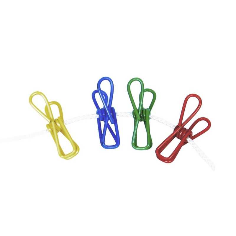 Ανθεκτικά, σχεδόν άφθαρτα, μεταλλικά μανταλάκια ρούχων, επικαλυμμένα με πλαστικό. Τα μανταλάκια μπορούν να χρησιμοποιηθούν σε όλα τα κανονικά σχοινιά ή να περαστούν σε ένα κορδόνι για ασφαλή μεταφορά. Μεμονωμένα, μπορούν να χρησιμοποιηθούν για το κρέμασμα πετσετών κ.λπ. από γάντζους ή καρφιά σε χώρους κατασκήνωσης. Πολύ πρακτικά και εύκολα στη χρήση! Εκτός από το σπίτι, είναι πολύ χρήσιμα και στο κάμπινγκ ή στα ταξίδια σας.