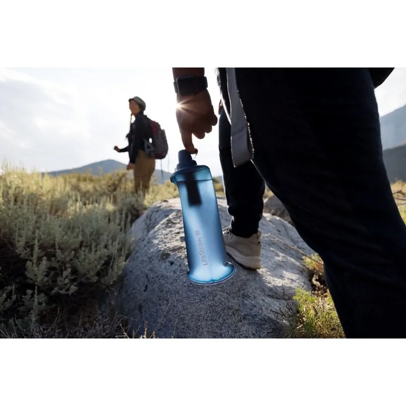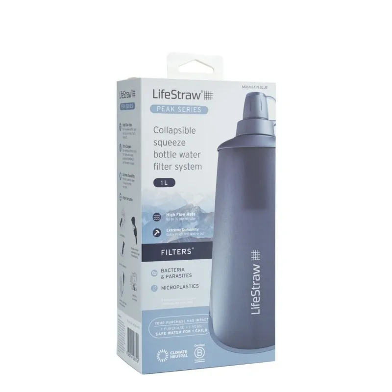 Το εύκαμπτο παγούρι με φίλτρο νερού Peak της Lifestraw έχει πολύ καλή διαπερατότητα και υψηλή αποτελεσματικότητα φίλτρανσης. Είναι ιδανικό για όλα σας τα ταξίδια αλλά και την καθημερινότητά σας. Έχει μέγεθος μόλις 12 x 30,8 cm και πολύ χαμηλό βάρος (110 gr) , ώστε να μην επιβαρύνει τον εξοπλισμό σας, ενώ είναι και αναδιπλούμενο, κάτι που το κάνει ακόμη πιο εύκολο στην μεταφορά. Εξουδετερώνει 99,9999% των βακτηρίων και παρασίτων που αναπτύσσονται στο νερό όπως τα E.coli και η σαλμονέλα και το 99,9% των πρωτόζωων όπως τα Giardia και Cryptosporidium. Ακόμη, χάρη στη νέα τεχνολογία του φίλτρου, απομακρύνονται αποτελεσματικά τα μικροπλαστικά, η άμμος και η λάσπη από το νερό. Το φίλτρο είναι κατασκευασμένο από μικροσκοπικά λεπτές, εσωτερικά κενές, ίνες που δημιουργούν μια αποτελεσματικότατη μεμβράνη φίλτρανσης με διάρκεια ζωής περίπου 2.000 lt νερού.
