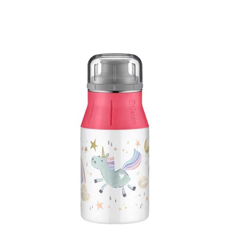 Το παιδικό παγούρι Element Bottle της εταιρείας Alfi είναι ένα πανέμορφο και αξιόπιστο προϊόν για να μπορεί το παιδί σας να μεταφέρει με ασφάλεια οποιοδήποτε ρόφημα, ακόμα και χυμούς φρούτων ή ανθρακούχα ροφήματα. Ιδανικό για τη θήκη του ποδηλάτου ή το σχολικό σακίδιο, είναι απόλυτα στεγανό και πολύ πρακτικό στη χρήση χάρη στο στόμιο σιλικόνης. Το στόμιο αυτό αφαιρείται για να μπορεί να πλυθεί πανεύκολα στο χέρι ή στο πλυντήριο πιάτων. Κατασκευάζεται στη Γερμανία από ανοξείδωτο ατσάλι, χωρίς επιβλαβείς ουσίες, και είναι άθραυστο. Χάρη στην τεχνολογία ΑromaSafe είναι απόλυτα ασφαλές και δεν αλλοιώνει τη γεύση των ροφημάτων. Απίθανο σχέδιο με ουράνιο τόξο και μονόκερους που ξετρελαίνει τα παιδιά και κάνει τους "μεγάλους" να ζηλεύουν!