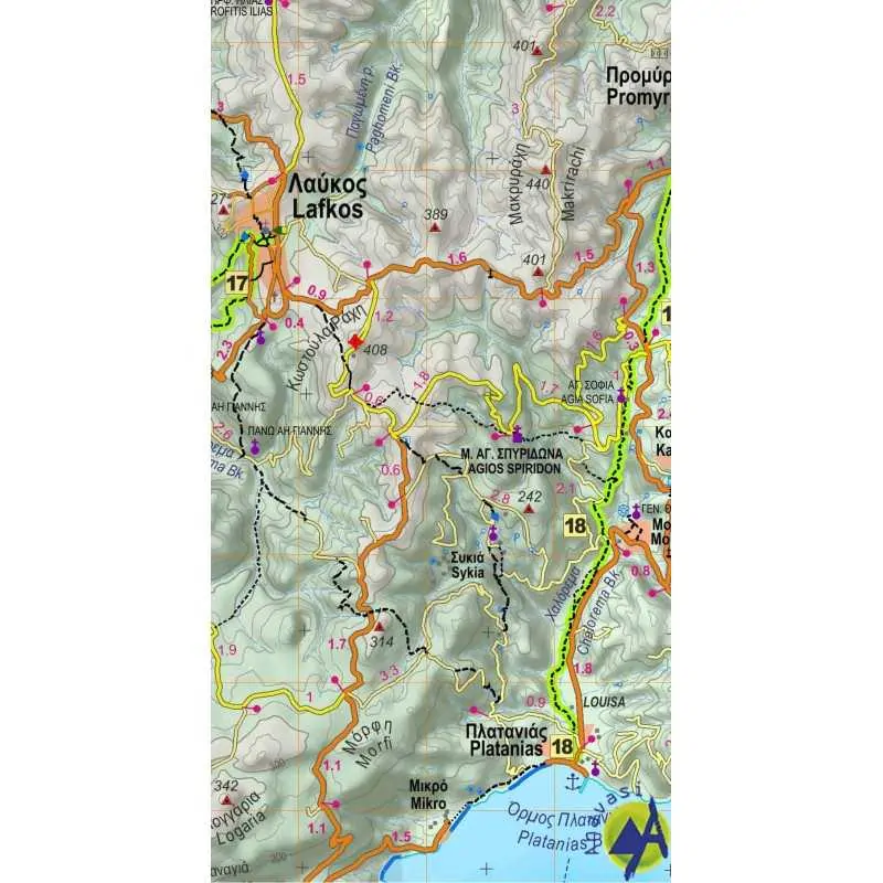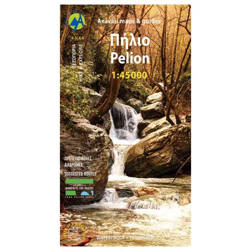 Πεζοπορικός χάρτης για το Πήλιο σε κλίμακα 1:45 000. Ο πεζοπορικός χάρτης Πήλιο σε κλίμακα 1:45 000 καλύπτει το σύνολο της ορεινής χερσονήσου αλλά και το Μαυροβούνι, φυσική συνέχεια του Πηλίου στα βόρεια και σας προτείνει 20 μικρές και μεγαλύτερες πεζοπορίες ανάμεσα σε δεκάδες άλλες που αποτυπώνονται στο χάρτη. Προικισμένος τόπος, το Πήλιο τα έχει όλα σε αφθονία, δάση, νερά, καρποφόρα δέντρα, υπέροχα λιθόστρωτα μονοπάτια, εξαιρετικές παραλίες και άφθονα παραδοσιακά χωριά. Τυπωμένος σε αδιάβροχο χαρτί Polyart